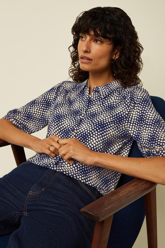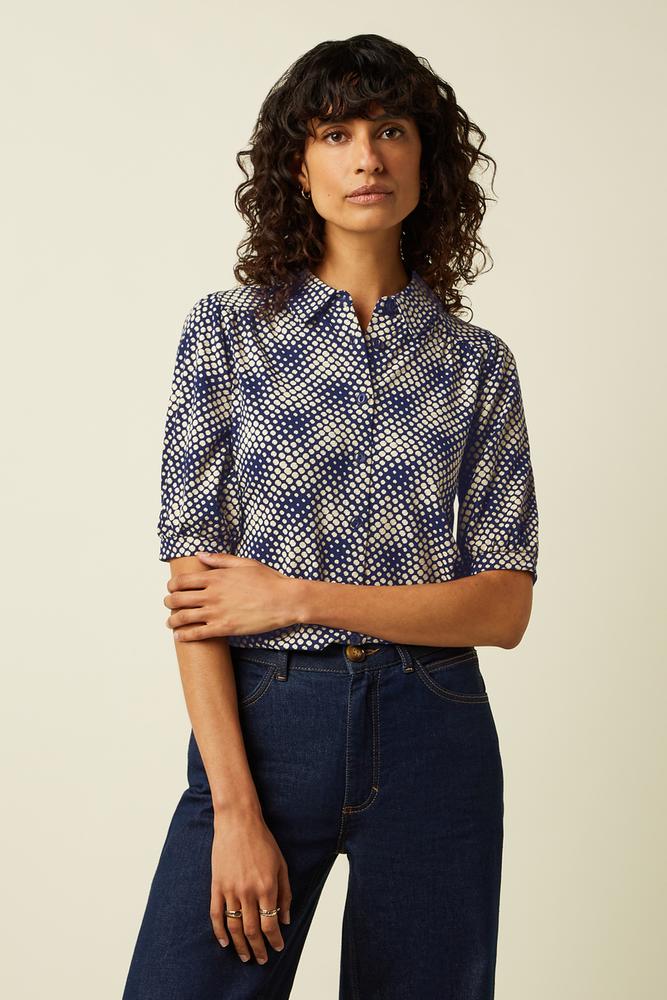 Mit klassischem Kragen, langen Ärmeln mit Manschetten und Knopfverschluss – für einen eleganten Look, der durch das auffällige grafische Muster besonders wird.
