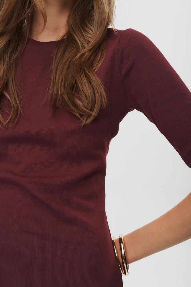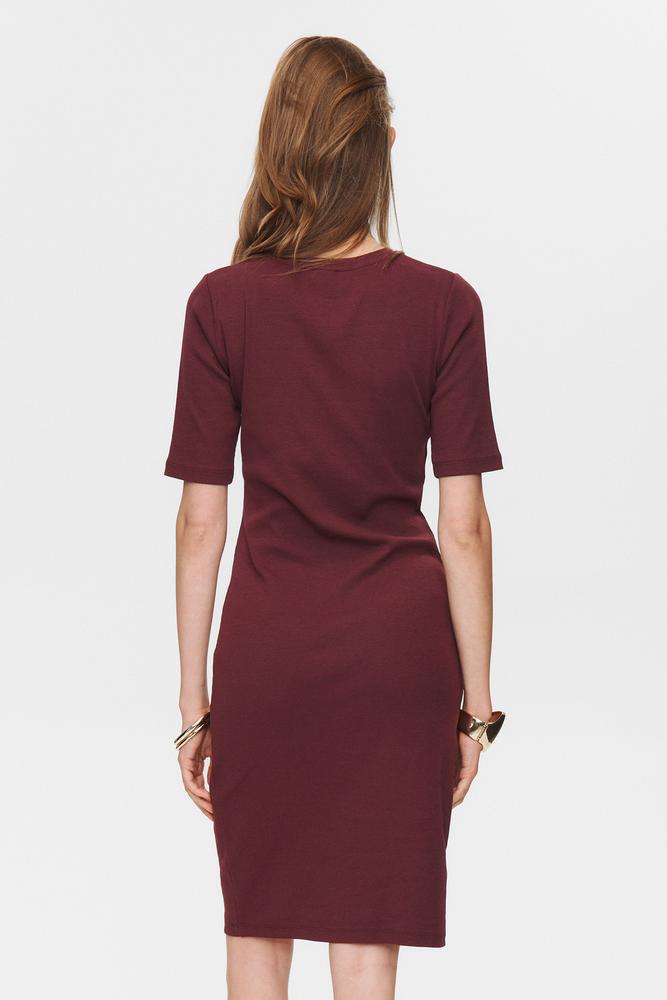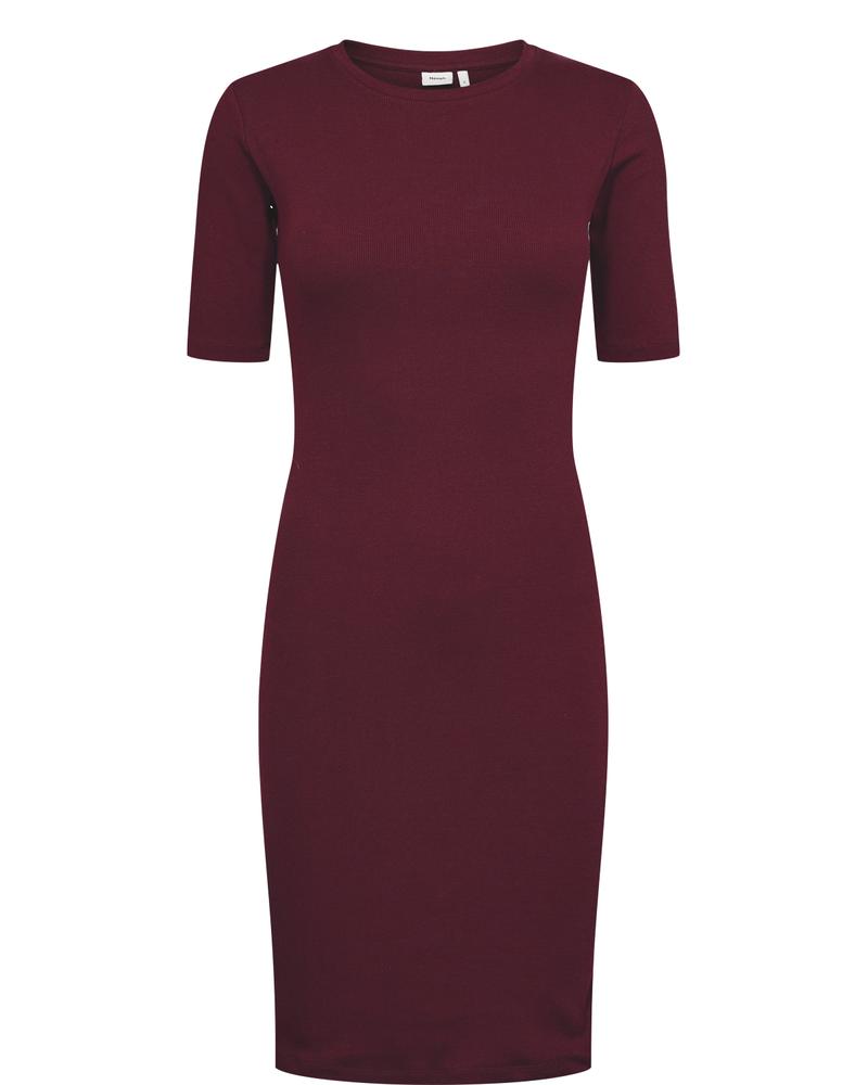 Geripptes Schlauchkleid aus Bio-Baumwolle in dunklem Weinrot.