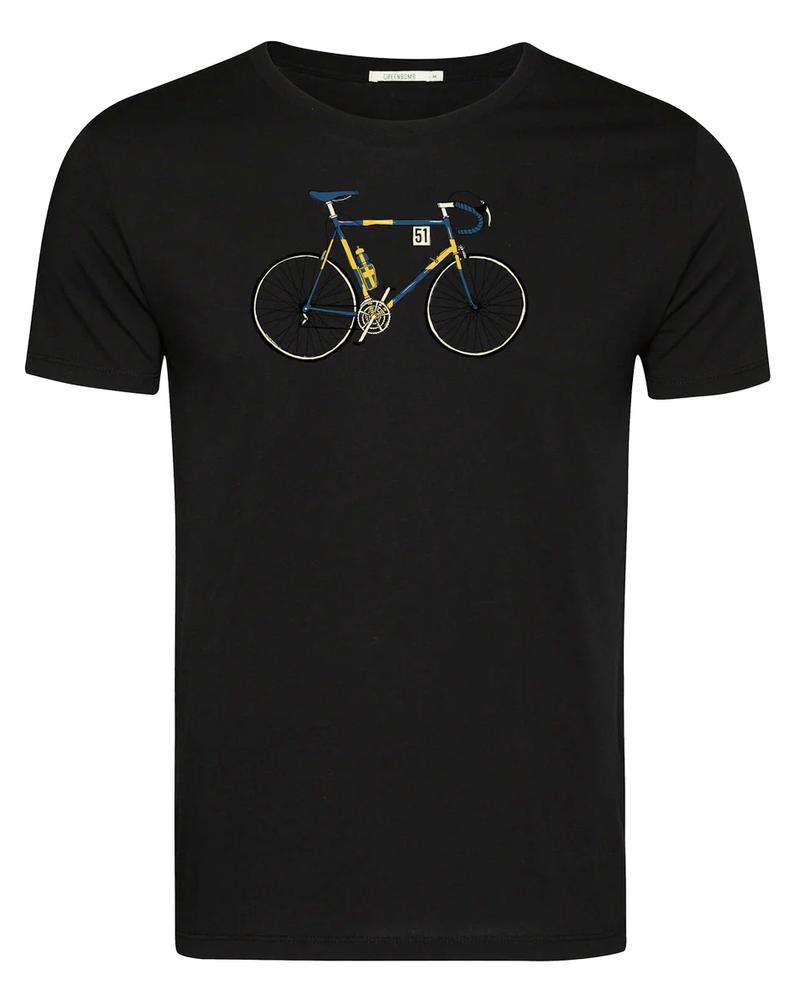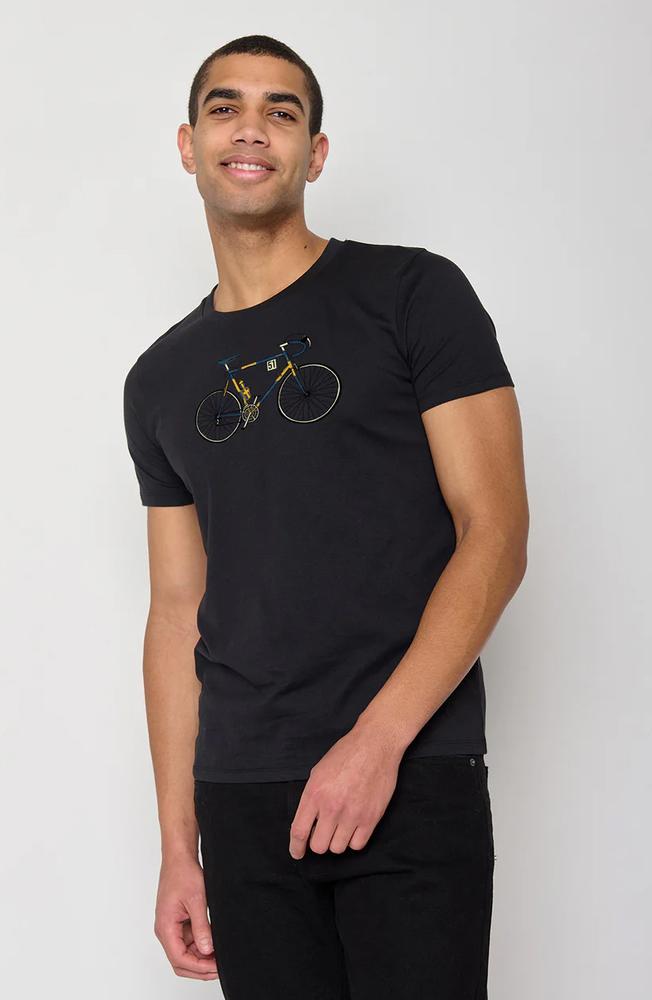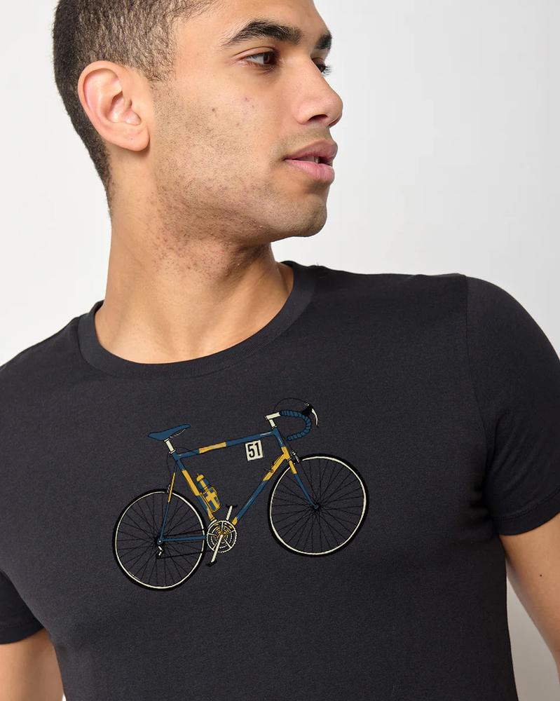 Auf der Brust befindet sich ein Fahrradmotiv mit einem Rennrad.