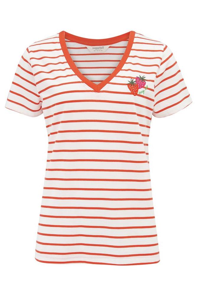 Eine Erdbeerstickerei auf der seitlichen Brust sorgt zudem für gute Laune.